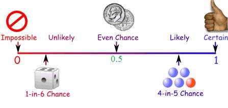 ಸಂಭವನೀಯತೆಯನ್ನು ಯಾವಾಗಲೂ ಭಿನ್ನರಾಶಿಯಲ್ಲಿ ಸೂಚಿಸುತ್ತೇವೆ ಮತ್ತು ಅದು ಯಾವಾಗಲೂ ≤ 1 ಆಗಿರುತ್ತದೆ.