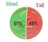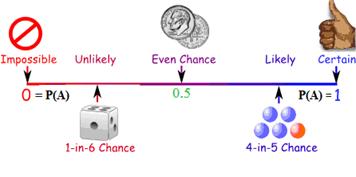 ಕೆಲವು ಘಟನೆಗಳ ಫಲಿತಾಂಶವನ್ನು ಕೆಲವು ಬಾರಿ ನಿರ್ದಿಷ್ಟವಾಗಿ ಹೇಳಲು ಸಾಧ್ಯ. ಉದಾಹರಣೆಗೆ ನಾಣ್ಯವನ್ನು ಚಿಮ್ಮಿದಾಗ ಎರಡೇ ಘಟನೆಗಳು ಆಗಲು ಸಾಧ್ಯ, ಒಂದೋ ಶಿರವು ಮೇಲ್ಮುಖವಾಗಿ ಬೀಳುತ್ತದೆ, ಇಲ್ಲ ಬಾಲವು ಮೇಲ್ಮುಖವಾಗಿ ಬೀಳುತ್ತದೆ. ಹಲವು ಬಾರಿ ನಾಣ್ಯವನ್ನು ಚಿಮ್ಮಿದಾಗ ಶಿರವು ಮೇಲ್ಮುಖವಾಗಿ ಬೀಳುವ(ಘಟಿಸುವ) ಸಾಧ್ಯತೆ 0% ದಿಂದ 100% ವರೆಗೆ ಇರಲು ಸಾಧ್ಯ. ಅದೇ ರೀತಿ ಬಾಲವು ಮೇಲ್ಮುಖವಾಗಿ ಬೀಳುವ(ಘಟಿಸುವ) ಸಾಧ್ಯತೆ 100% ರಿಂದ 0% ವರೆಗೆ ಇರಲು ಸಾಧ್ಯ. ಆದರೆ ನಾಣ್ಯವನ್ನು ಹೆಚ್ಚಿನ ಸಂಖ್ಯೆಯಲ್ಲಿ ಚಿಮ್ಮಿದಾಗ ಶಿರವು ಮತ್ತು ಬಾಲವು ಮೇಲ್ಮುಖವಾಗಿ ಬೀಳುವ(ಘಟಿಸುವ) ಸಾಧ್ಯತೆ 50% ಆಗಿರುತ್ತದೆ.